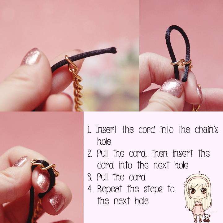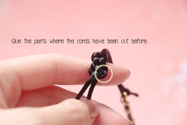Jangan lupa untuk lem bagian ujung dari rantainya ke tali supaya rantainya gak lepas-lepas. Kasih lem nya dikit aja, kalau kebanyakan jadi keliatan jelek.
